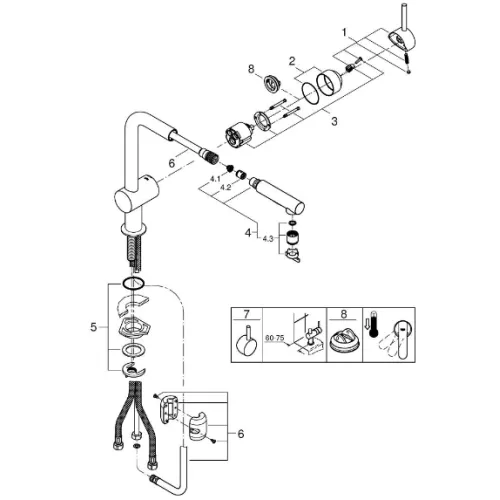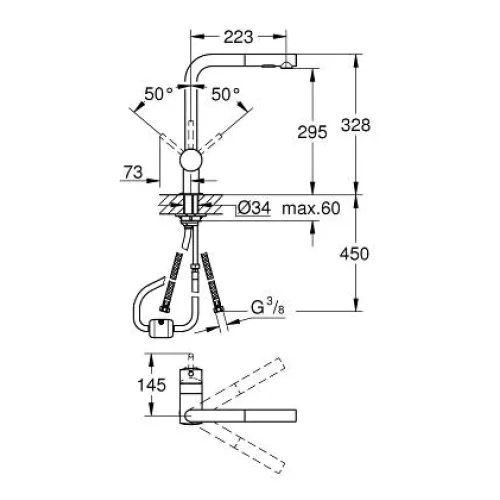 | Опции | гибкая подводка, аэратор, крепление, выдвижная лейка |