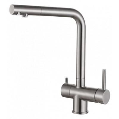 Смеситель для кухонной мойки ZorG SZR 7039 GRAFIT из нержавеющей стали - надежный, стильный и эргономичный. Специалисты компании ZorG разработали широкий модельный ряд смесителей для кухни. Различные стилевые решения помогут подобрать сантехнику к интерьеру Вашей кухни. В данном смесителе имеется возможность подключения фильтрованной воды. Фильтрованная вода протекает по отдельной трубке расположенной внутри смесителя, поэтому она не смешивается с обычной водой.