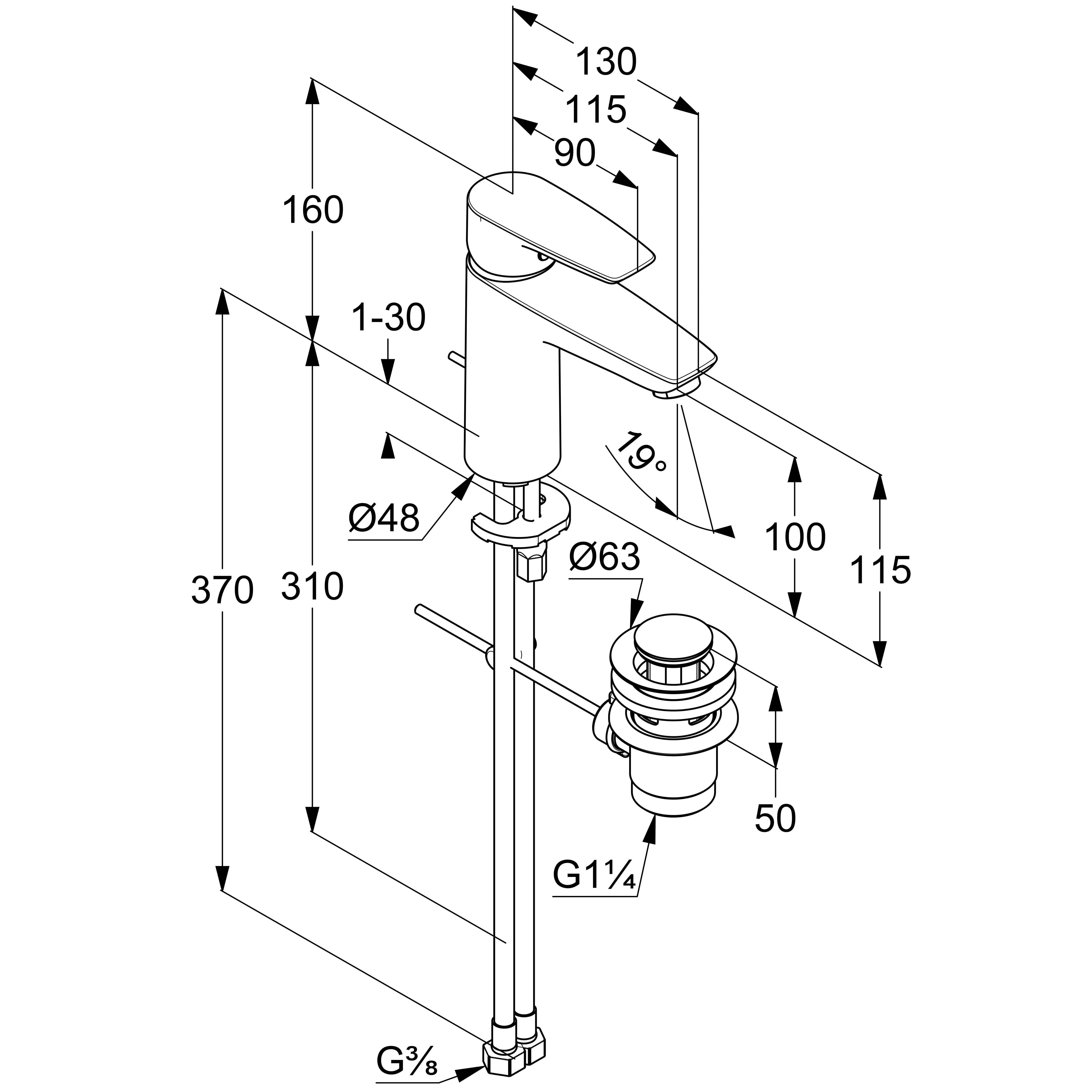 Смеситель для раковины Kludi PURE&SOLID 342930575WR4 хром