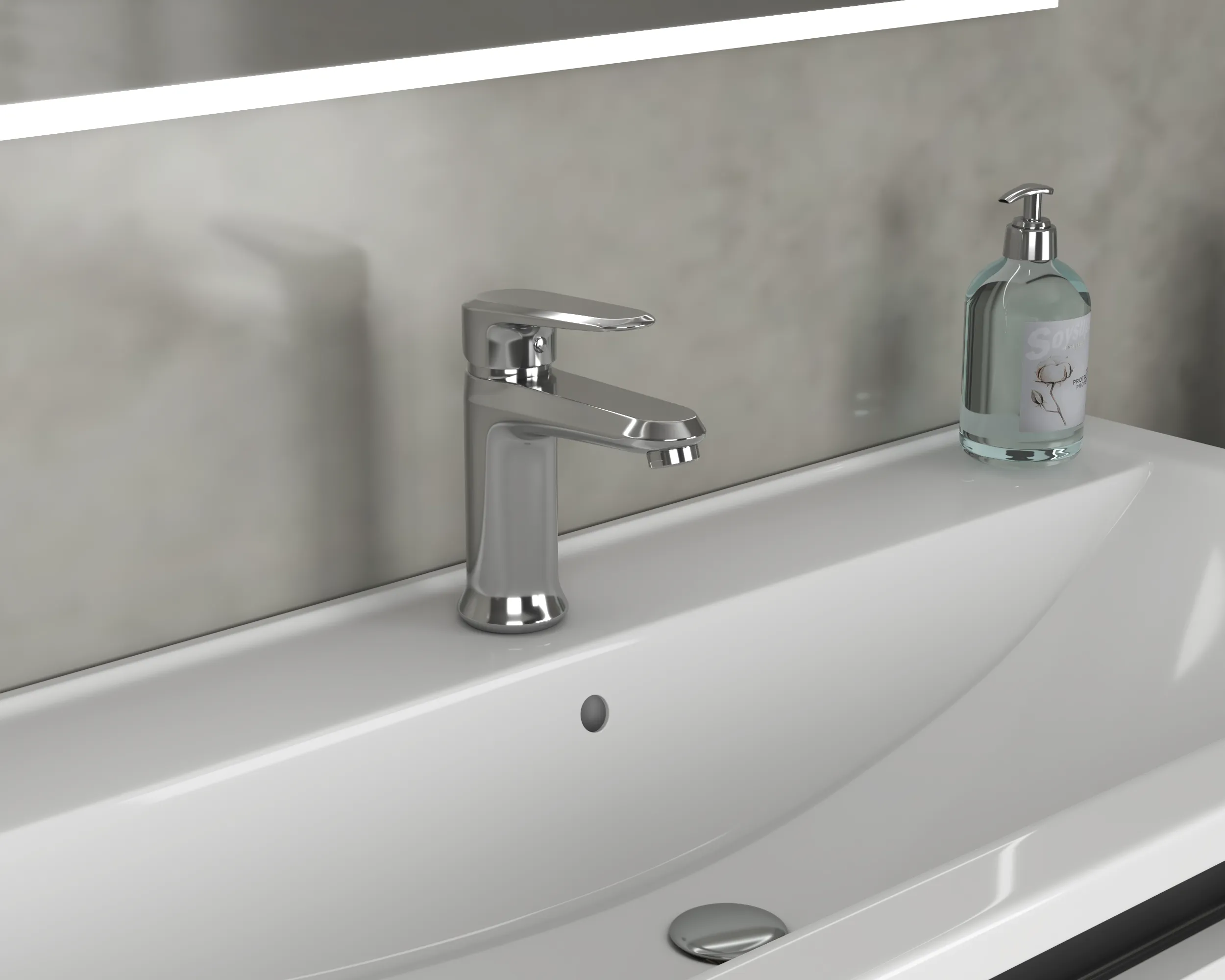 Смеситель для раковины RUSH арт. DE7535-11 с металлической ручкой из коллекции Devon изготовлен из высококачественной латуни и имеет рычажное управление. В смеситель установлен картридж D-35 (RSH302) с керамическими пластинами. Высота смесителя 164 мм. Излив литой, неповоротный, 113 мм. Высота излива до аэратора 101 мм. Аэратор изготовлен из пластика с нержавеющим корпусом, угол наклона - 15 гр. В комплекте гибкая подводка с латунными гайками 35см - 2шт, фум-лента, индивидуальный пакет, паспорт, гарантийный талон.