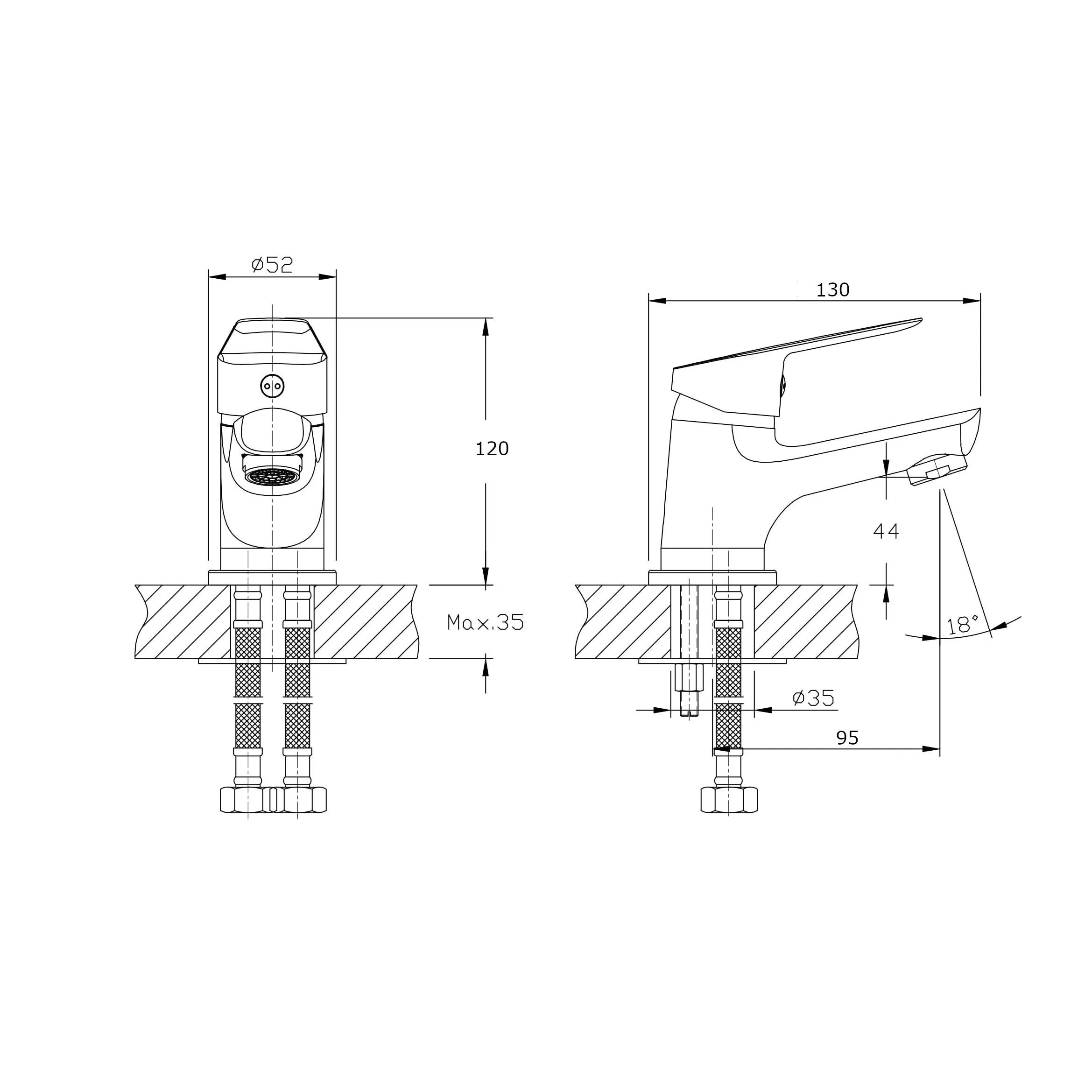 Смеситель для раковины RUSH арт. DI6935-11 с металлической ручкой из коллекции Disco изготовлен из высококачественной латуни и имеет рычажное управление. В смеситель установлен картридж D-35 (RSH102) с керамическими пластинами. Высота смесителя 120 мм. Излив литой, неповоротный, 95 мм. Высота излива до аэратора 44 мм. Аэратор изготовлен из пластика с нержавеющим корпусом, угол наклона - 18 гр. В комплекте универсальная присоединительная группа (шпилька-2шт), гибкая подводка с латунными гайками 35см - 2шт, фум-лента, индивидуальный пакет, паспорт, гарантийный талон.