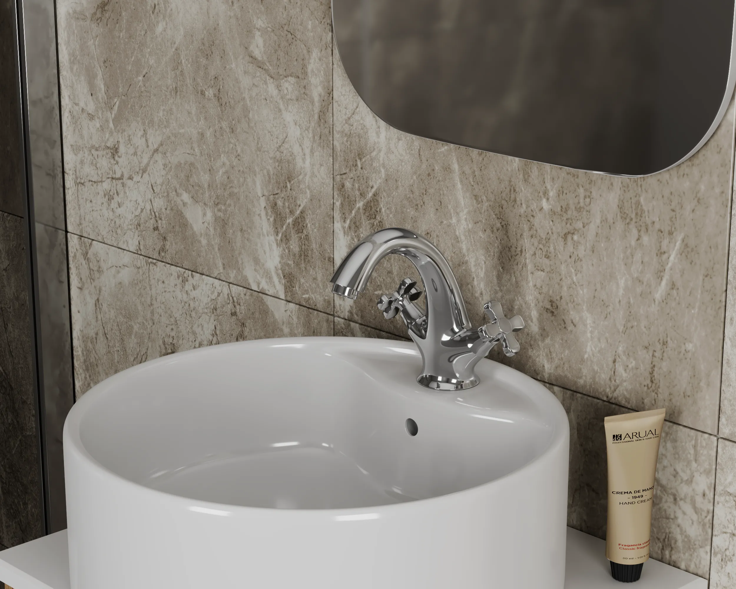 Смеситель для раковины RUSH арт. SA5350-11 с металлической ручкой из коллекции Sakhaline изготовлен из высококачественной латуни и имеет вентильное управление. В смеситель установлены кран-буксы (RSH502) с керамическими пластинами. Высота смесителя 165 мм. Излив литой неповоротный 136 мм. Высота излива до аэратора 112 мм. Аэратор изготовлен из пластика с нержавеющим корпусом, угол наклона - 26 гр. В комплекте универсальная присоединительная группа (шпилька-2шт), гибкая подводка с латунными гайками 35см - 2шт, фум-лента, индивидуальный пакет, паспорт, гарантийный талон.