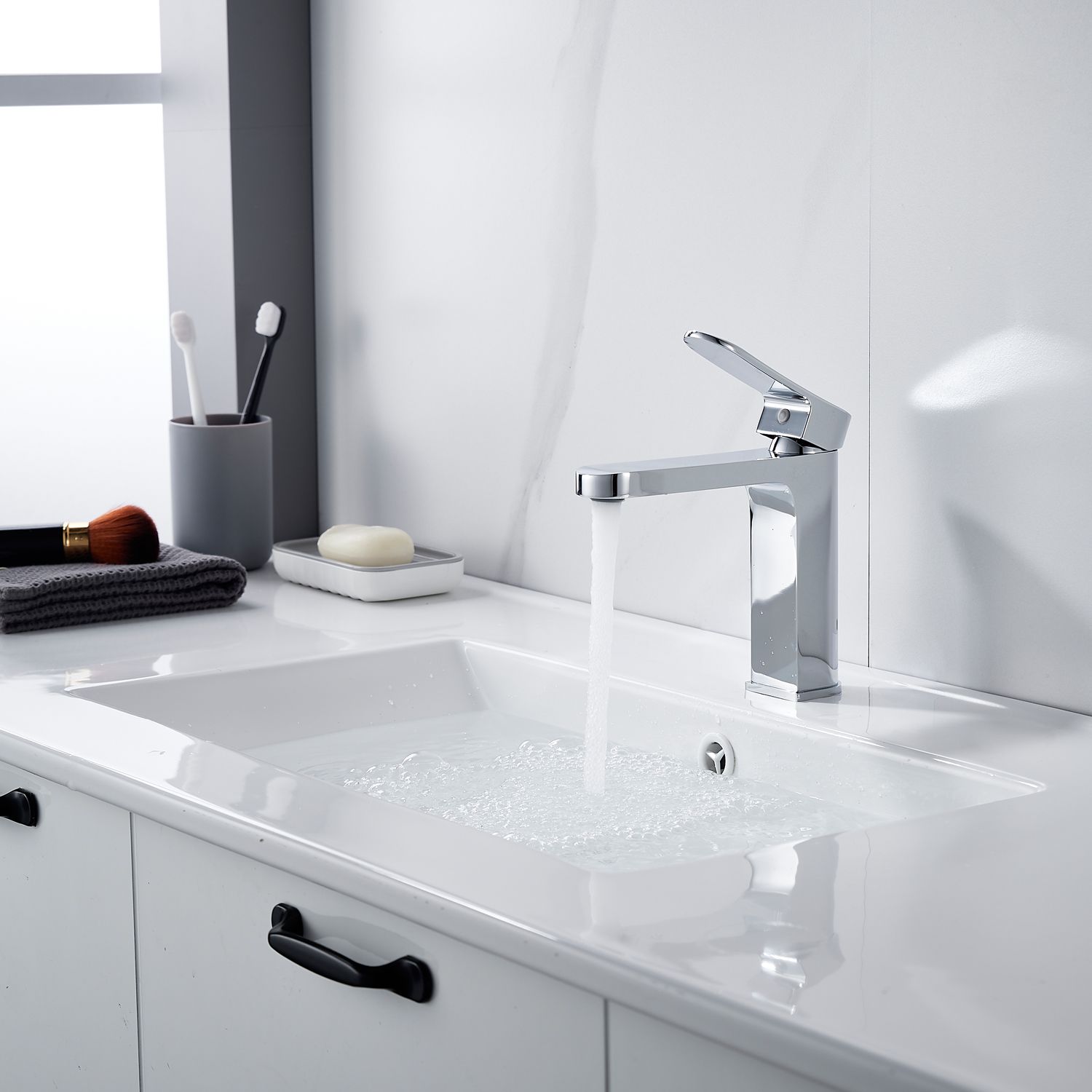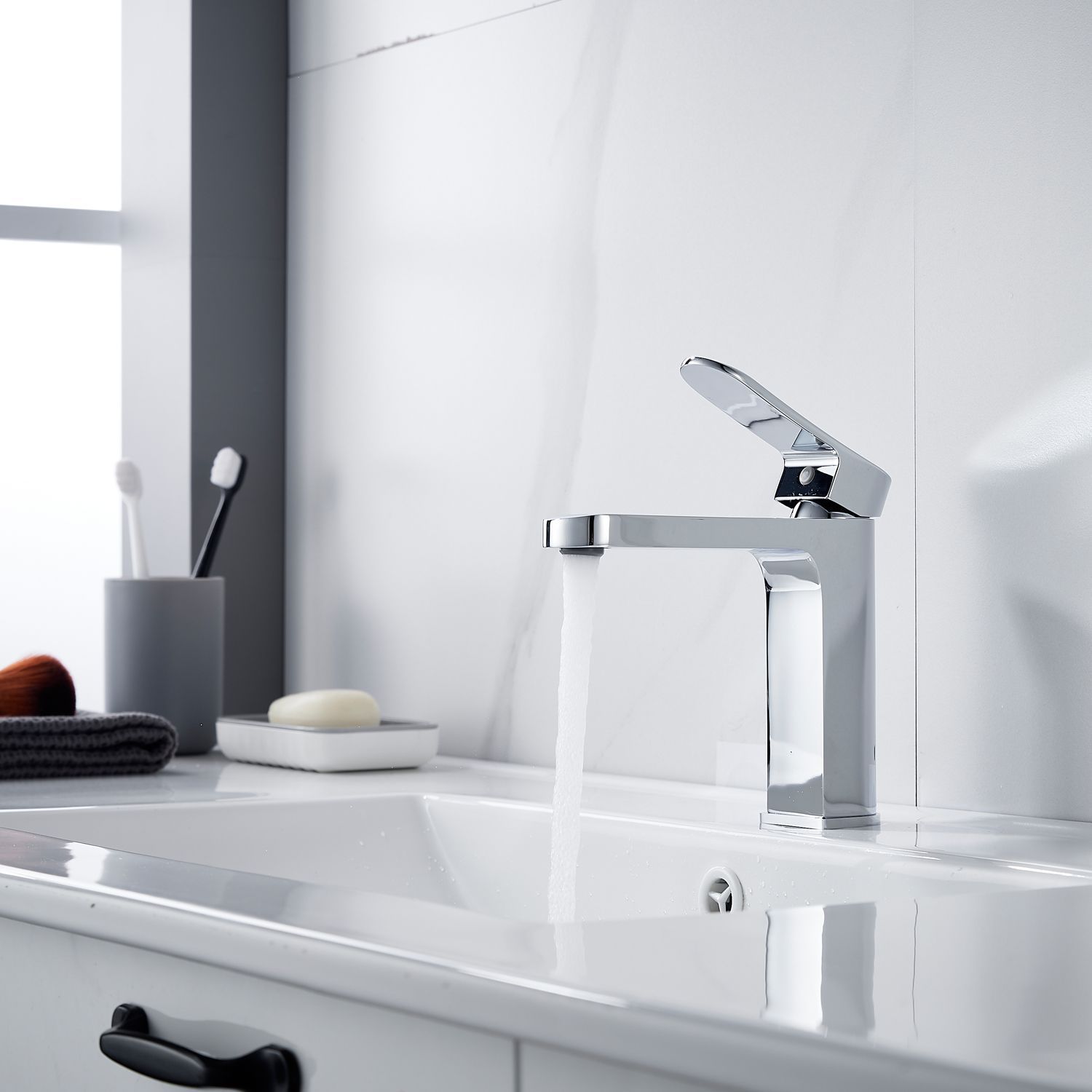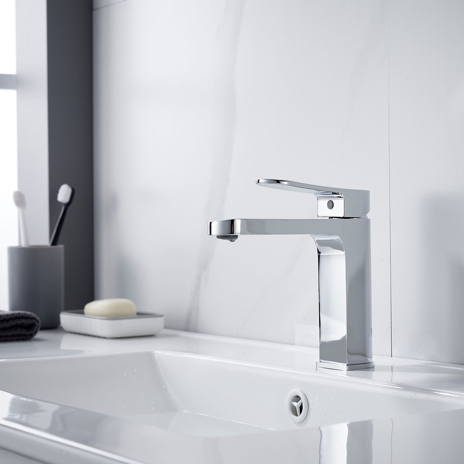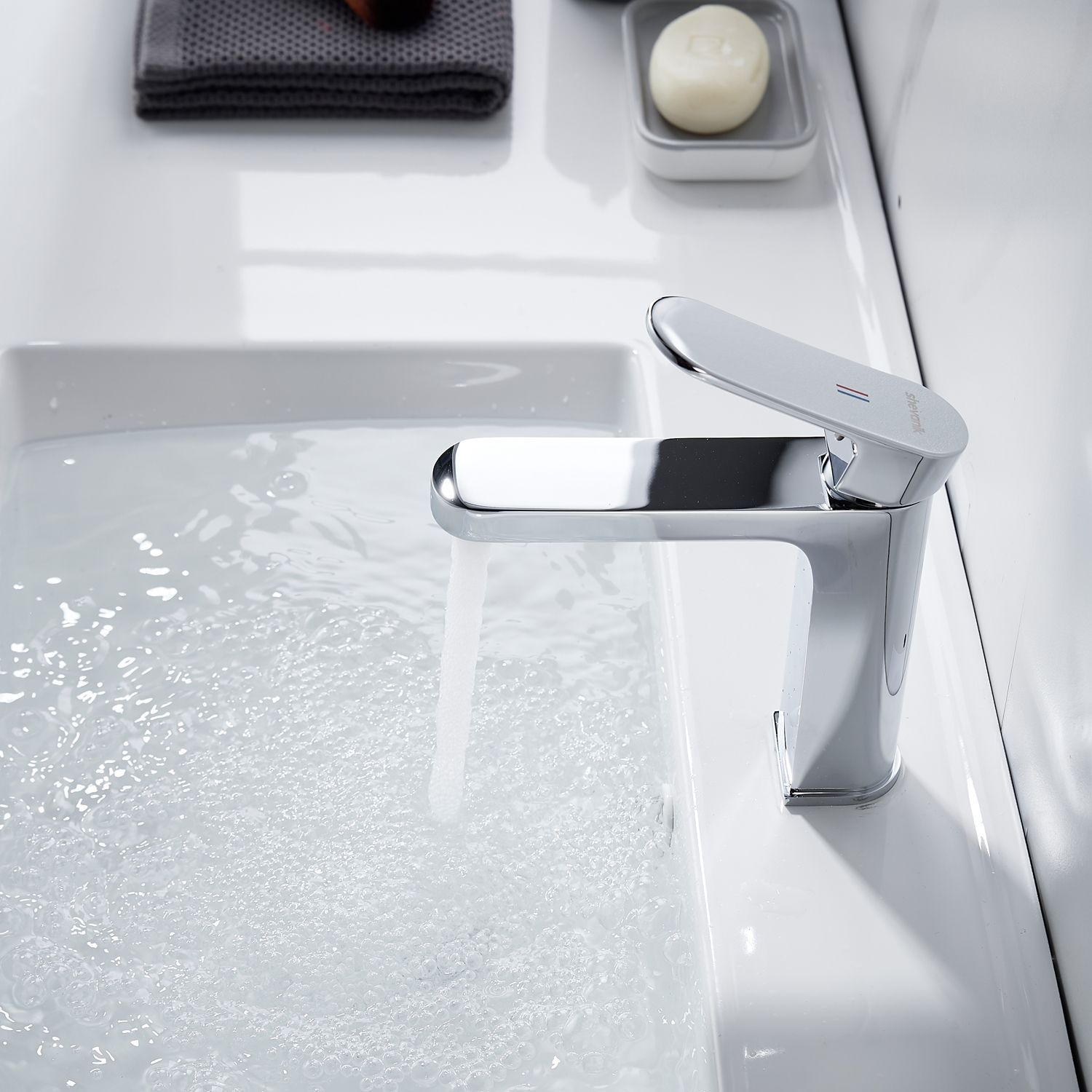 Смеситель выполнен в стильном и современном дизайне, который будет гармонично смотреться в любом интерьере. Хромированный цвет придает изделию элегантность и блеск, делая его не только функциональным, но и эстетически приятным элементом ванной комнаты.