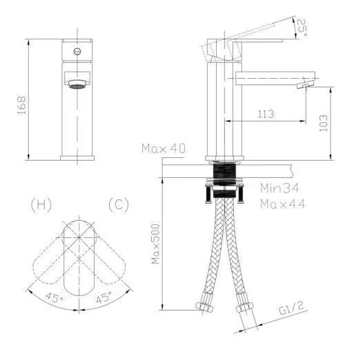 - высота смесителя: 168 мм