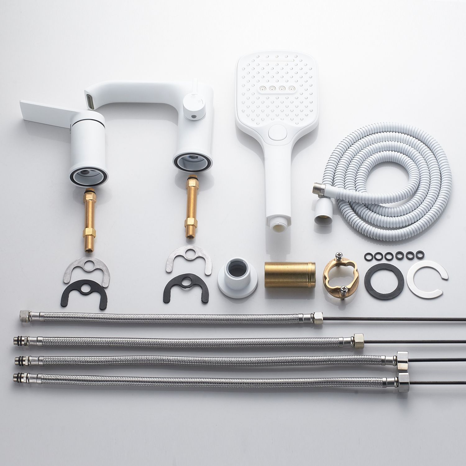 Смеситель для ванны Shevanik S4112C выполнен в стильном белом цвете, который легко впишется в любой интерьер ванной комнаты.