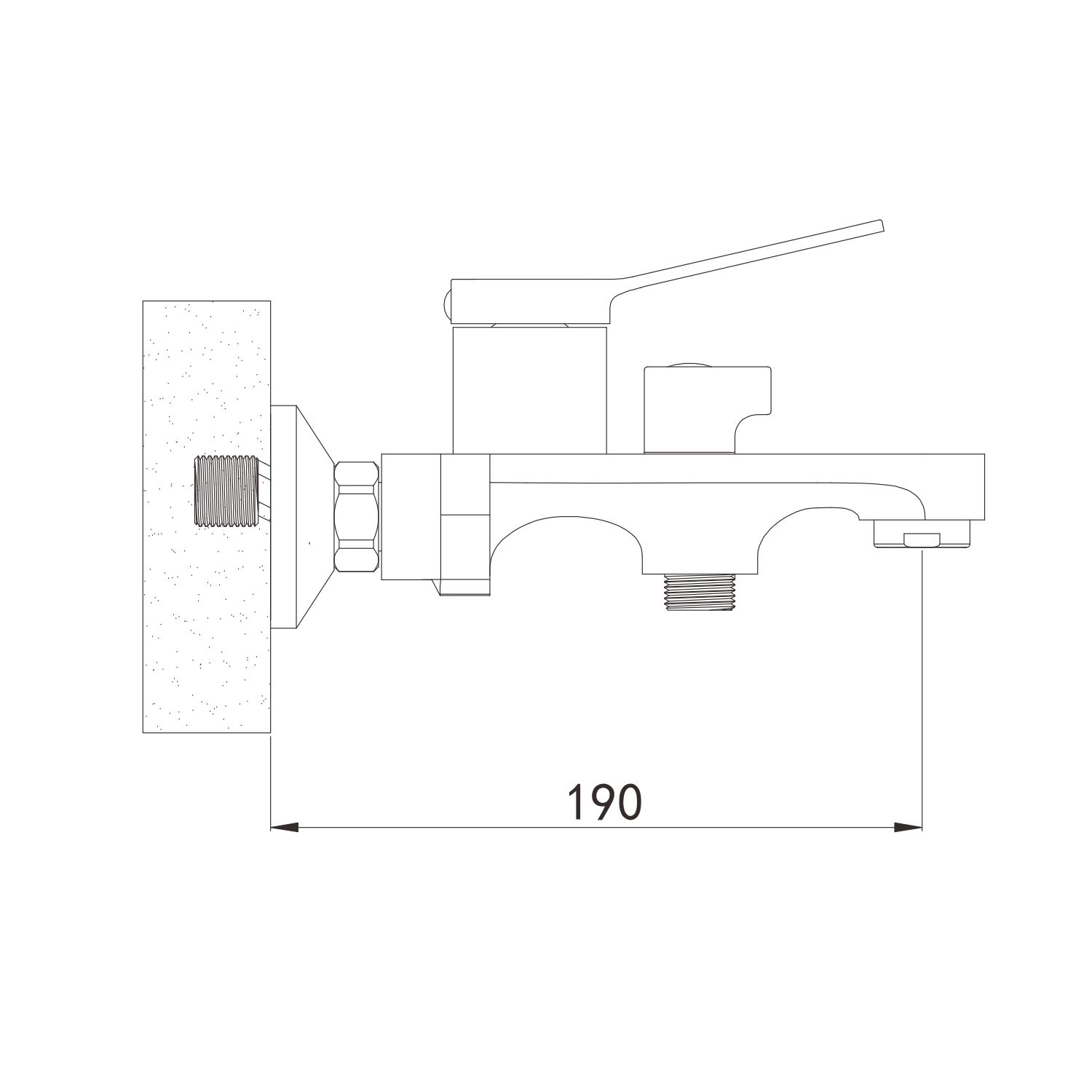 Смеситель имеет длину излива 190 мм и высоту 125 мм, что обеспечивает комфортное использование и позволяет легко дотянуться до всех частей ванны.