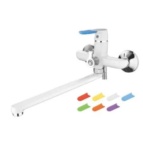 Смеситель с длинным поворотным изливом и душевой лейкой Ledeme L2253Wвыглядит значительно нарядней классических хромированных аналогов. Модель дополнена комплектом разноцветных силиконовых чехлов для рукоятки. В наборе представлены семь красивых оттенков. Не составит труда подобрать оптимальные варианты для ванной комнаты, оформленной в любой цветовой гамме. Можно отдать предпочтение классическому белому или добавить красок и ноток оригинальности в интерьер помещения, зафиксировав на рукоятке стильного смесителя яркий цветной чехол.