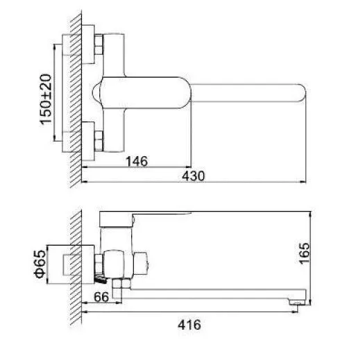 Смеситель для ванны с длинным изливом 300 мм