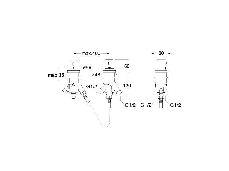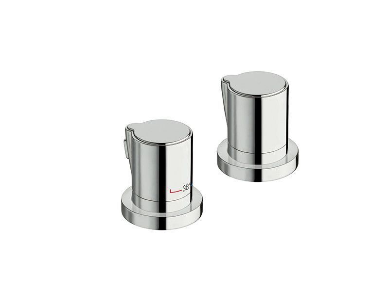 Термостатический смеситель для ванны для монтажа на бортик с переключателем на 2 выхода с ручками из АВС пластика, цвет хром.