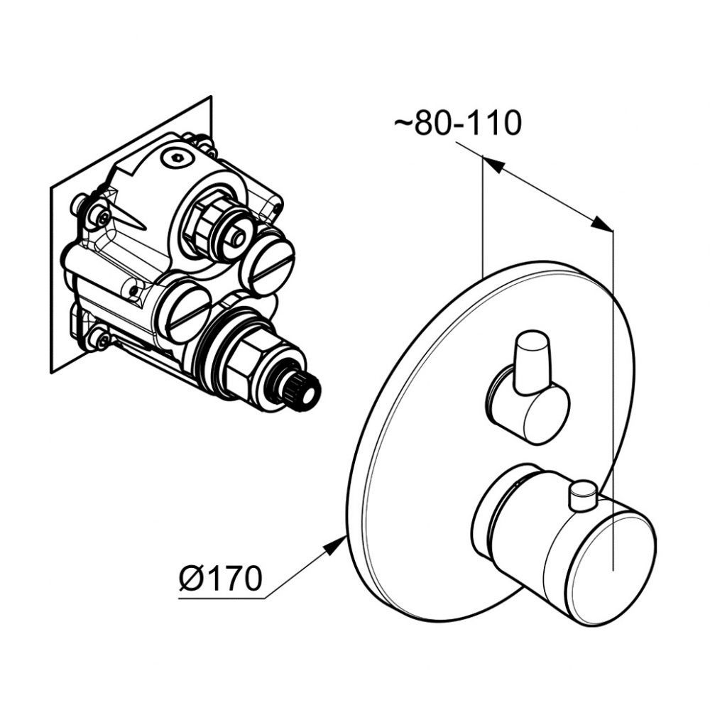• В комплект входят: термостатический элемент, керамический запорный вентиль, переключатель ванна/душ