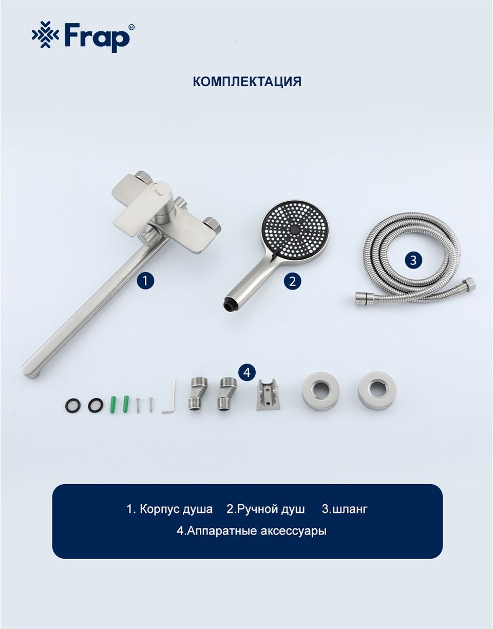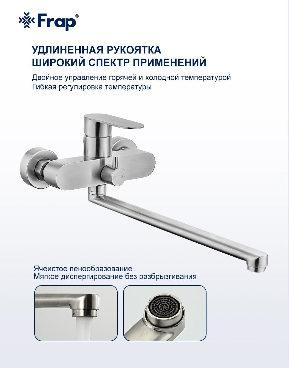 Смеситель для ванны Frap F22806, однорычажный, сатин