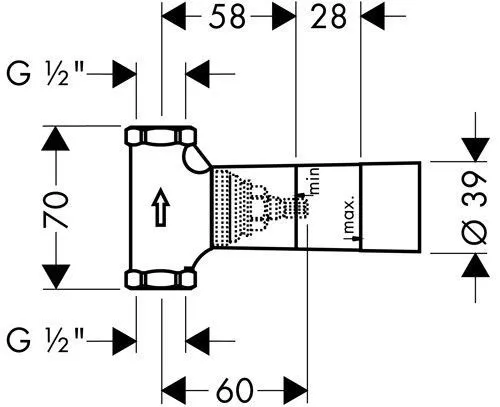 Скрытая часть запорного вентиля, СМ, керамическая, ½’, расход воды 40 л / мин