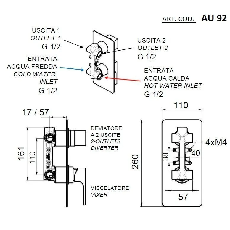 Смеситель Remer Absolute AU92 для душа/ванны, хром