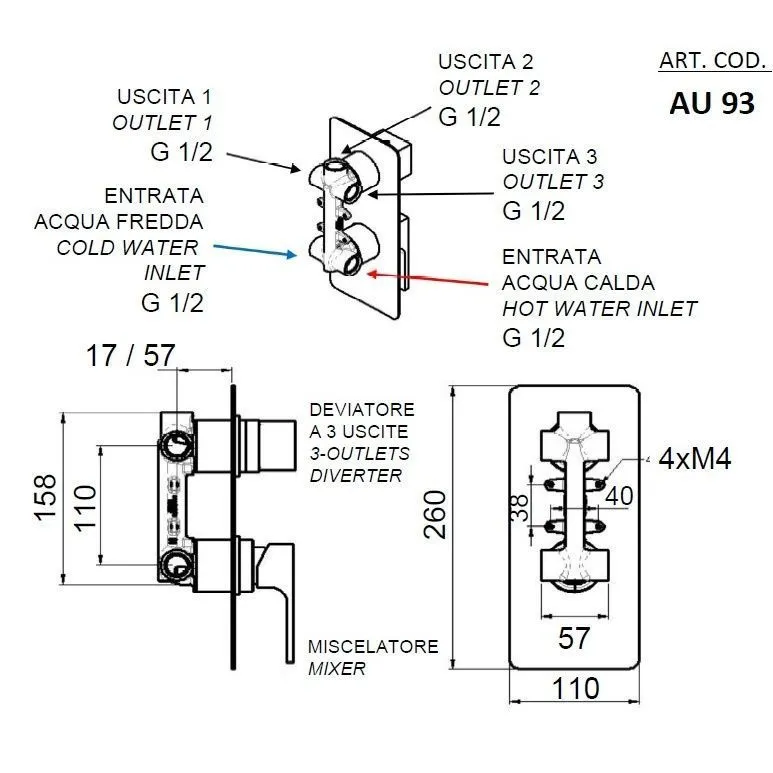 Смеситель Remer Absolute AU93 для душа/ванны, хром