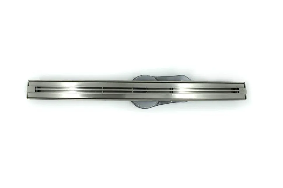 Трап изготовлен из нержавеющей стали, имеет эстетичный внешний вид. Состоит из узкого прямоугольного корпуса с лотком, верхней планки, затвора и отвода диаметром 50 мм. Тип затвора - cухой. По направлению стока делается уклон. Страна производства — Турция.