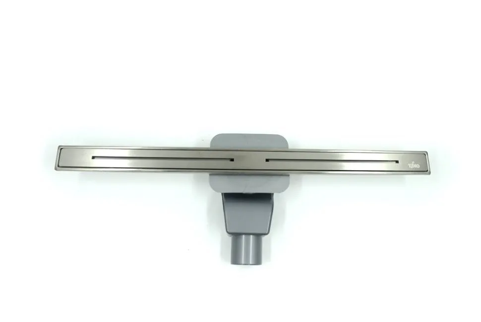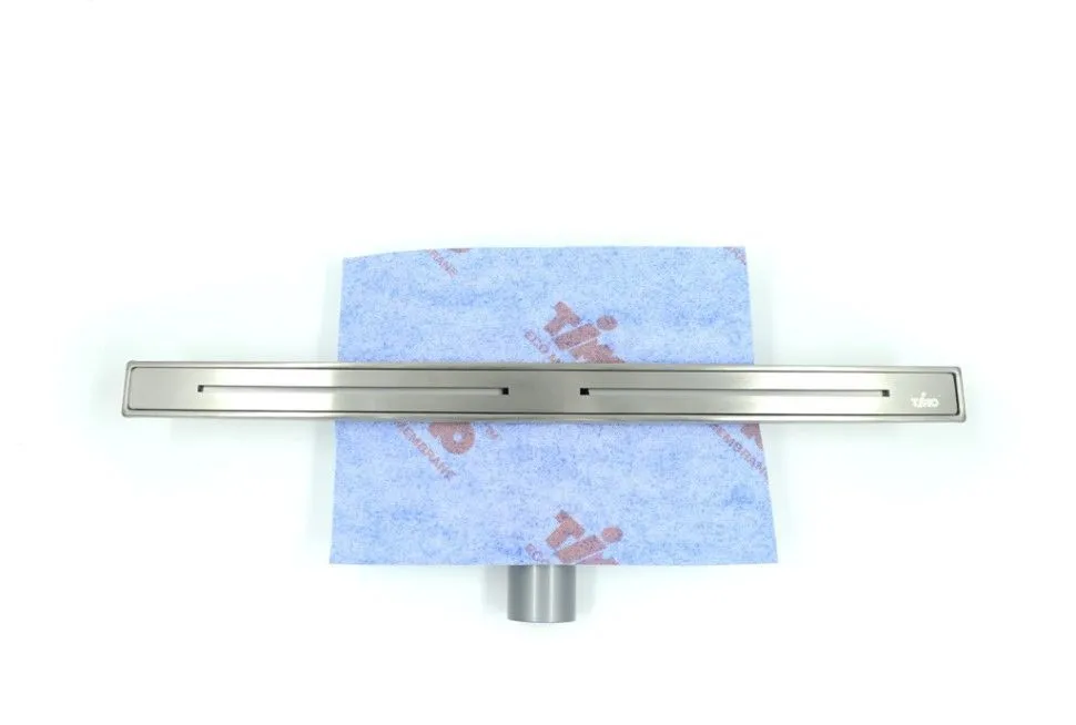 Трап изготовлен из нержавеющей стали, имеет эстетичный внешний вид. Состоит из узкого прямоугольного корпуса с лотком, верхней планки, затвора и отвода диаметром 50 мм. Тип затвора - cухой. По направлению стока делается уклон. Страна производства — Турция.