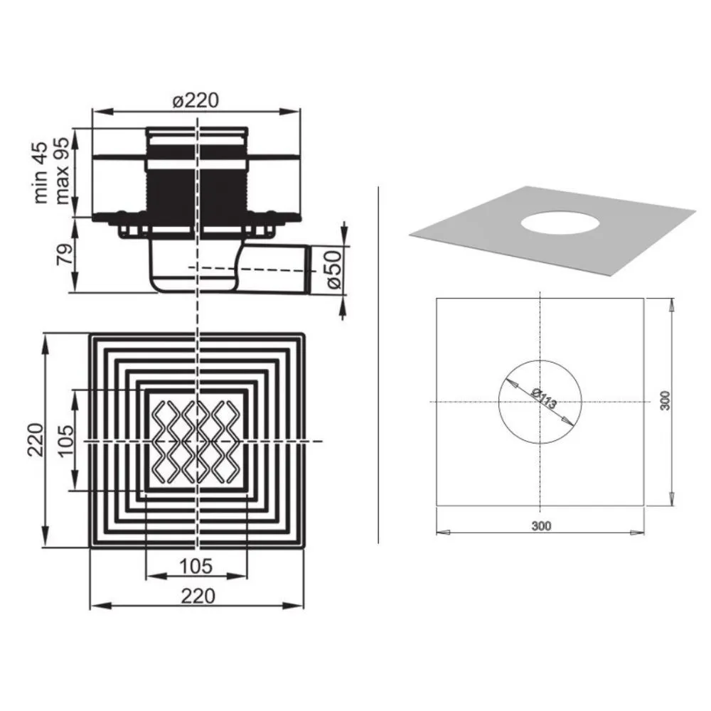 Подходит для душевых уголков, ванных комнат и технических помещений. Монтажная высота 104 мм. Нержавеющий фланец и гидроизоляция.