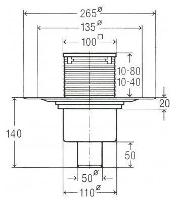 - поворотный и регулируемый по высоте надставной элемент 100x100 мм,