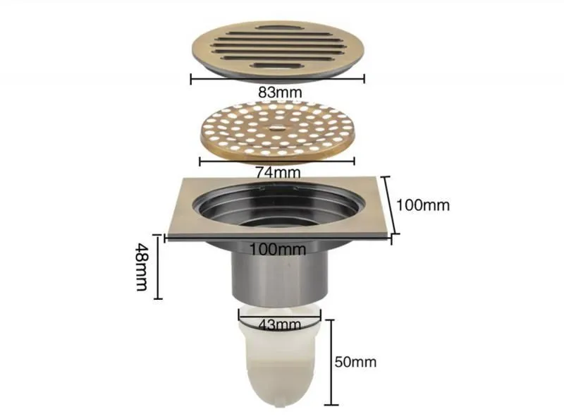 Душевой трап Gappo G81001-4 с решеткой. Сделан из латуни и пластика. Пластиковый механизм не сгниет со временем и не будет накапливать на стенках налет.