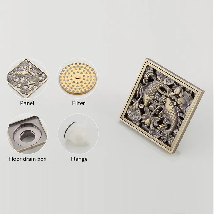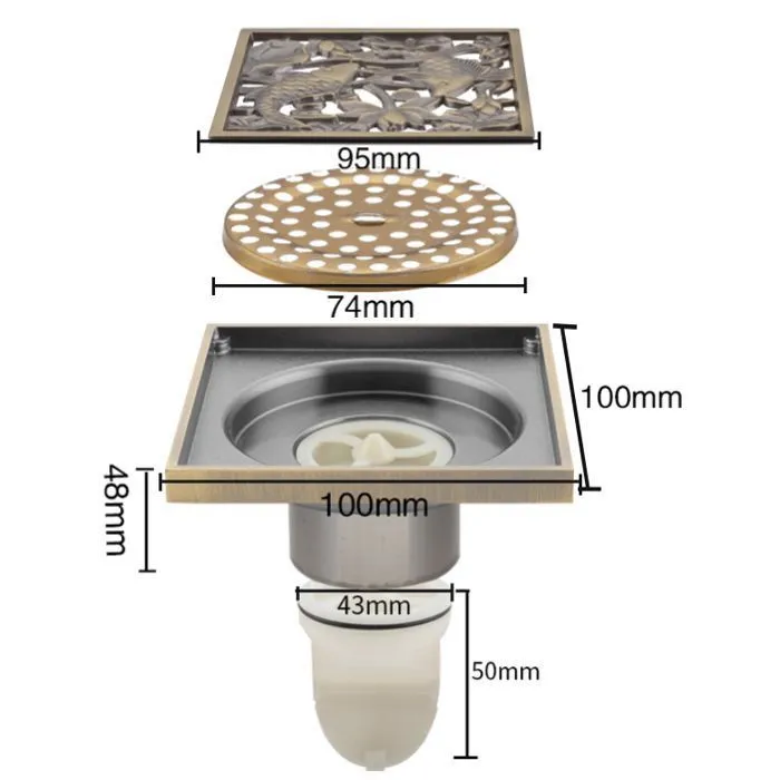 Душевой трап Gappo G81002-4 с решеткой. Сделан из латуни и пластика. Пластиковый механизм не сгниет со временем и не будет накапливать на стенках налет.