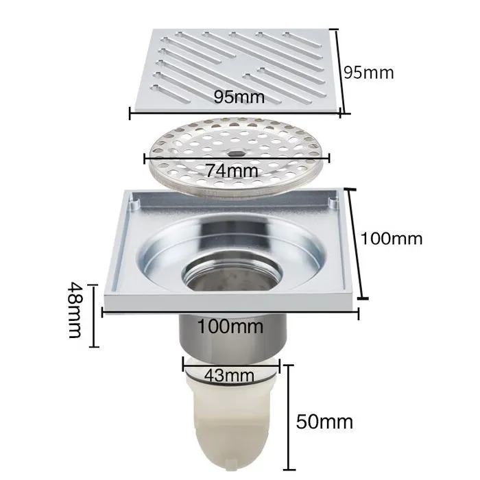 Душевой трап Gappo G81050 с решеткой. Сделан из латуни и пластика. Решетка покрыта хромом, не потеряет блеск и не будет ржаветь. Пластиковый механизм не сгниет со временем и не будет накапливать на стенках налет.