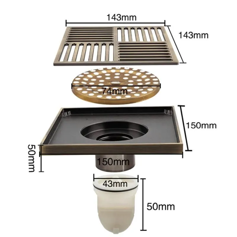 Душевой трап Gappo G81501-4 с решеткой. Сделан из латуни и пластика. Пластиковый механизм не сгниет со временем и не будет накапливать на стенках налет.