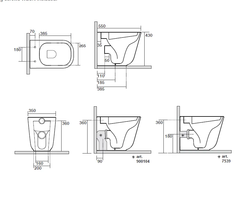 - Kerasan Tribeca Унитаз напольный пристенный 55 см БЕЗОБОДКОВЫЙ, c креплением WB5N, цвет: белый