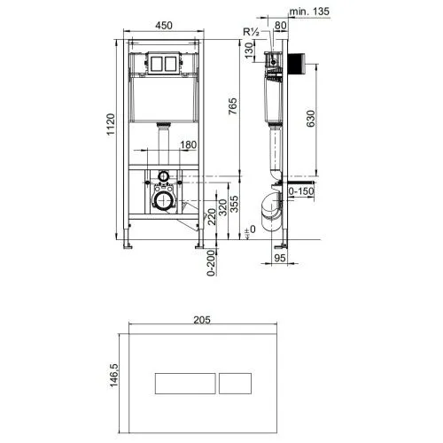 • высота: 112–132 см; ширина 45 см, глубина встраивания: 13,5–18 см