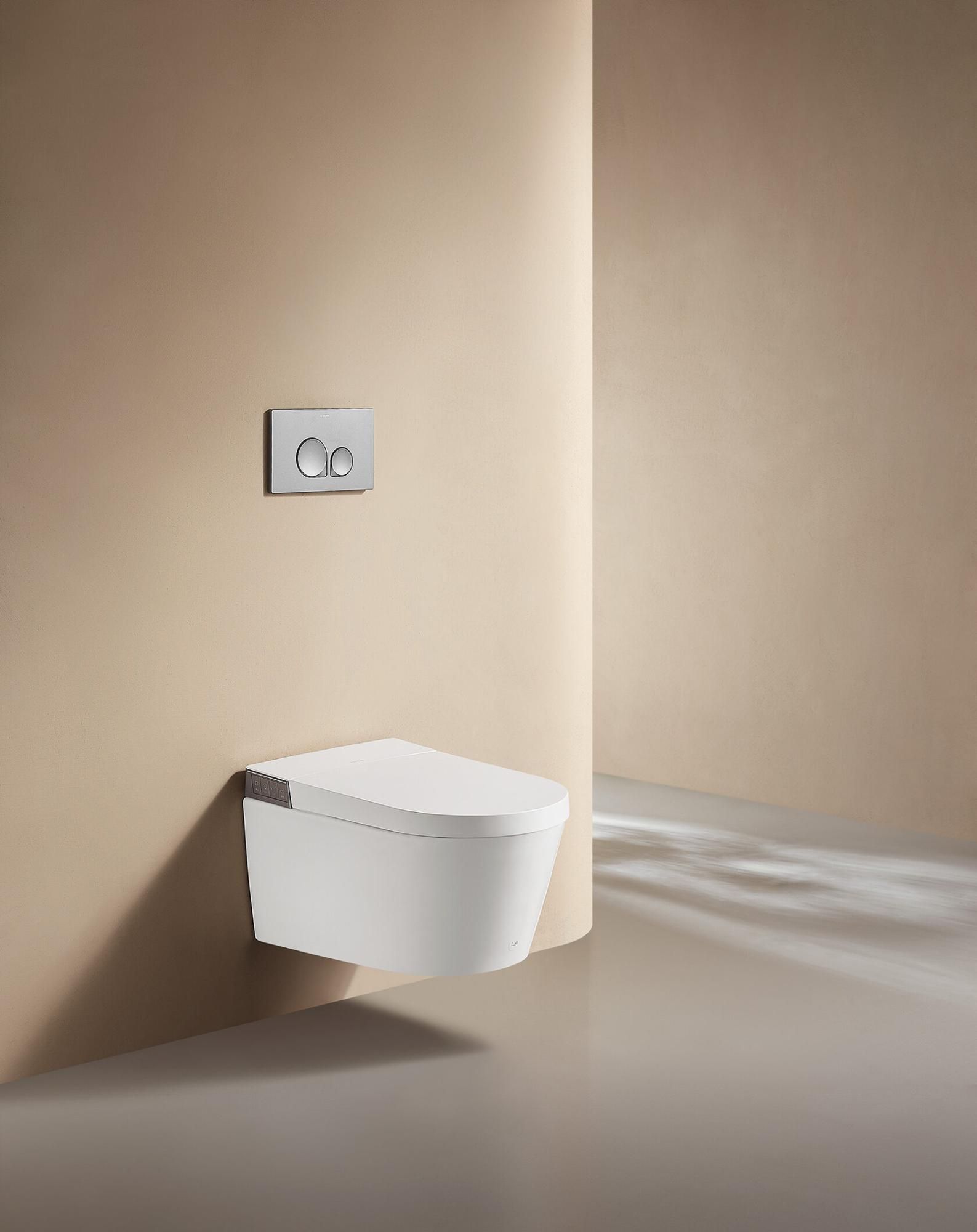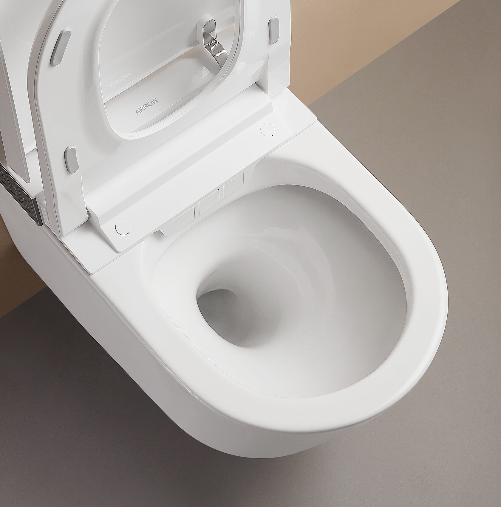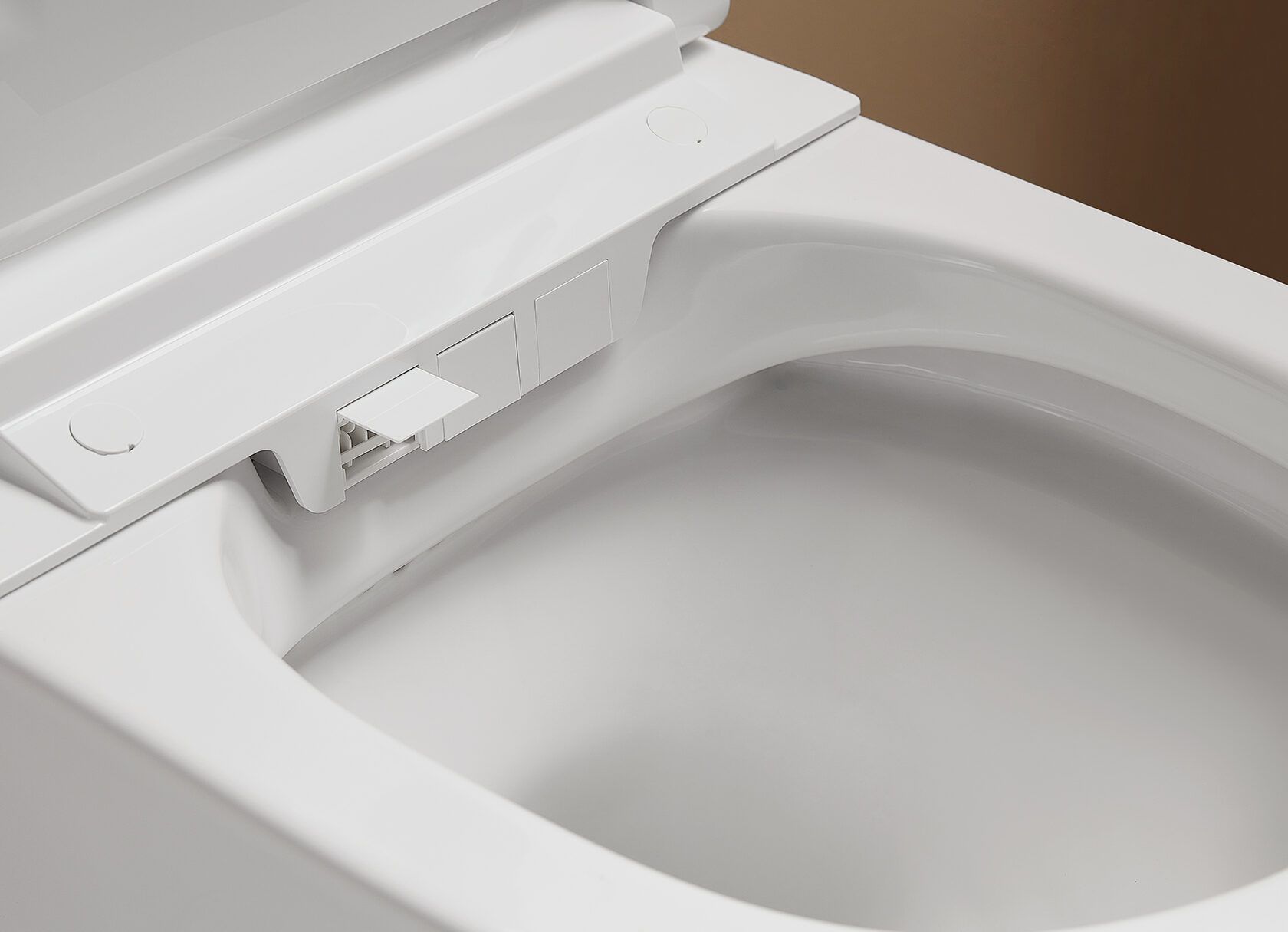 - Когда крышка открыта, но сиденье закрыто и на унитазе нет сидящего человека, проведите ногой в зоне датчика, и сиденье откроется.