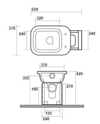 Универсальный выпуск-в стену, -в пол (с помощью технического колена). Вертикальный смыв. Материал санфарфор. Цвет белый.