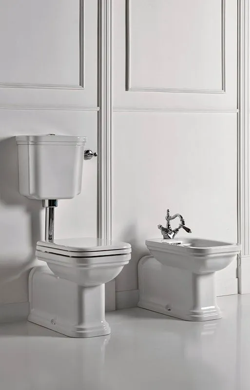 Приставной унитаз Kerasan (Керасан) коллекция Waldorf. Монтаж со средним бачком. Механизм смыва унитаза и крышка-сиденье заказываются отдельно. Материал санфарфор. Цвет белый.