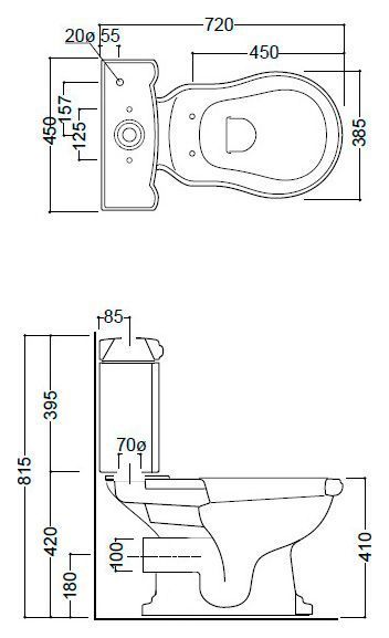 Размер унитаза с бачком: