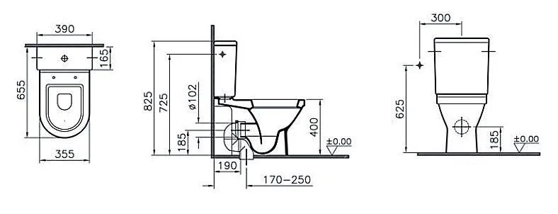 Комплект: 5321B003-0075 унитаз, 5422B003-5450 бачок и механизм в комплекте, 72-003-301 стандартное сиденье, подвод воды снизу