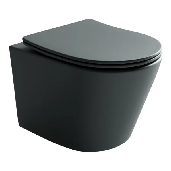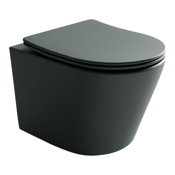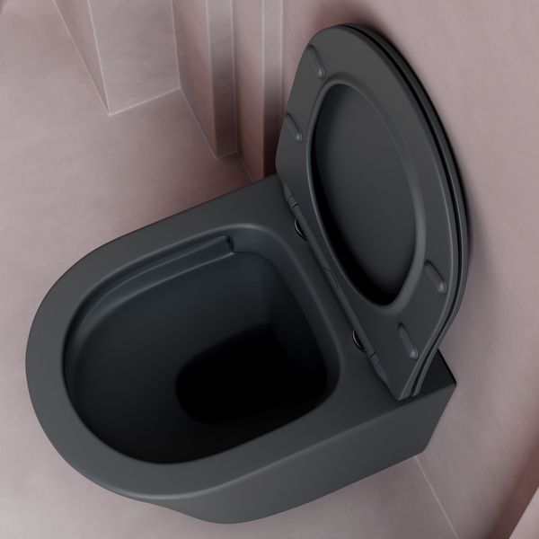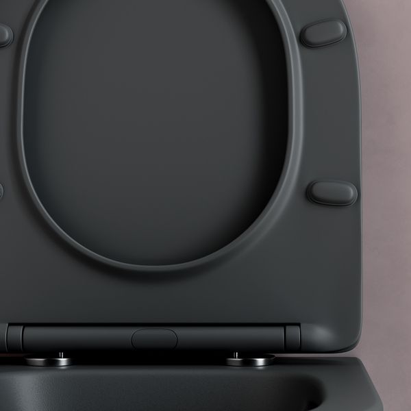 Подвесной унитаз Balearica Rimless (цвет Темный Антрацит Матовый), глубокий смыв, с крепежом для полностью скрытого монтажа, ультра тонким с сидением и крышкой с функцией плавного закрытия, дюропласт
