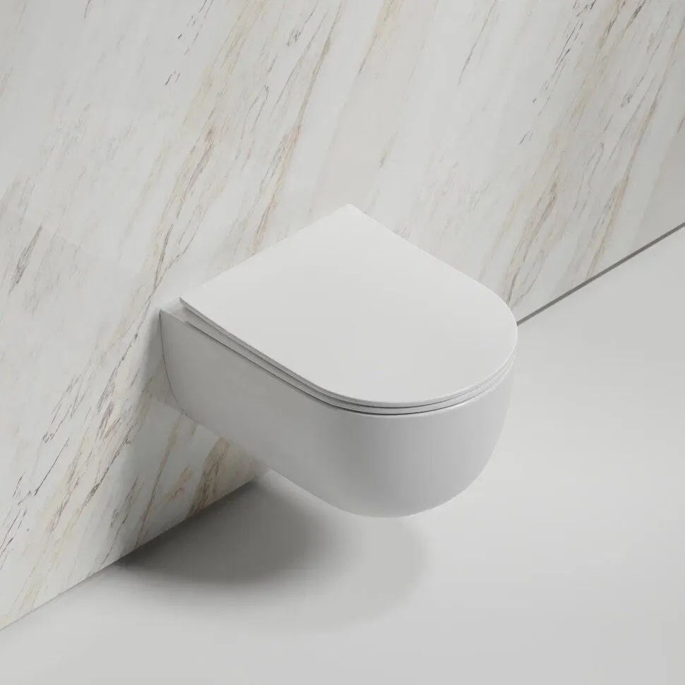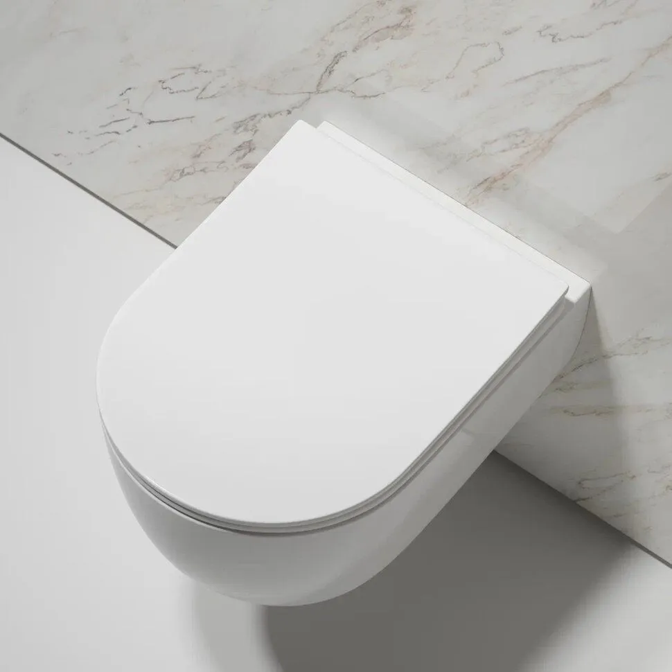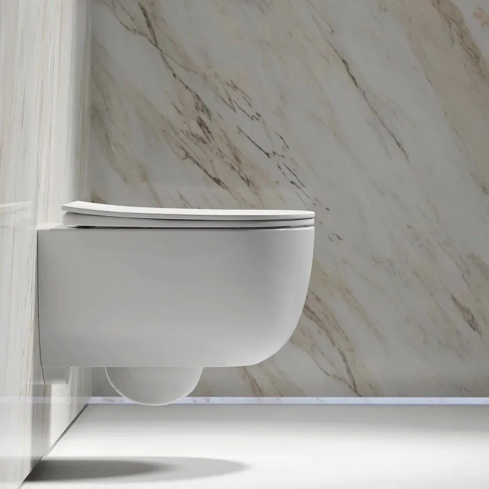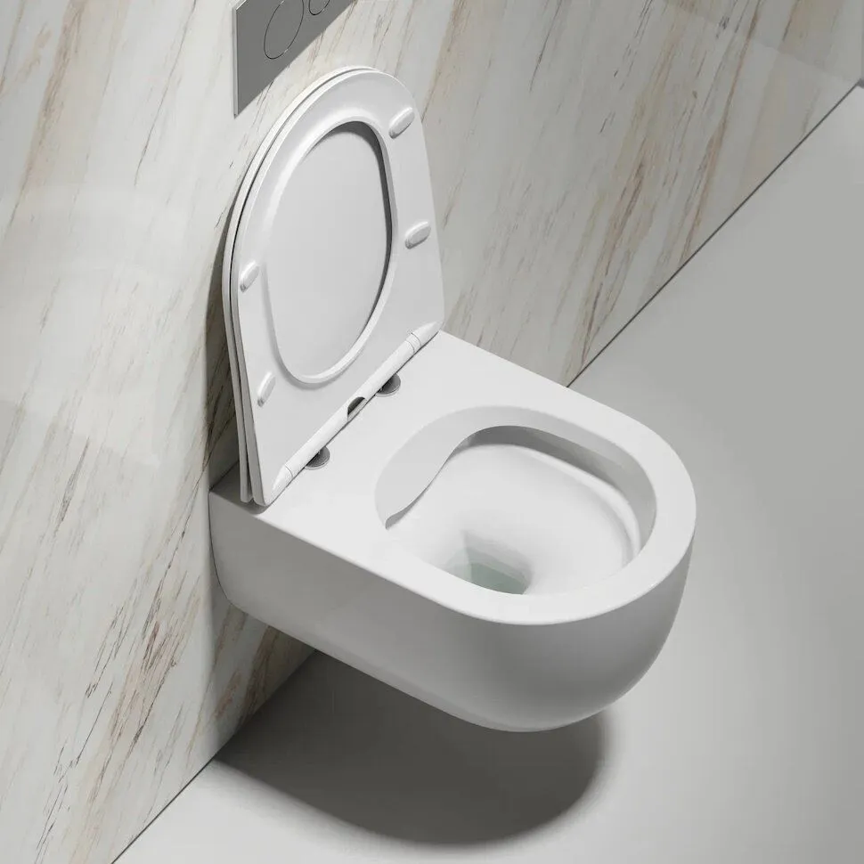 Подвесной унитаз Modena Rimless, глубокий смыв, с крепежом для полностью скрытого монтажа, ультратонким сидением и крышкой с функцией плавного закрытия, дюропласт