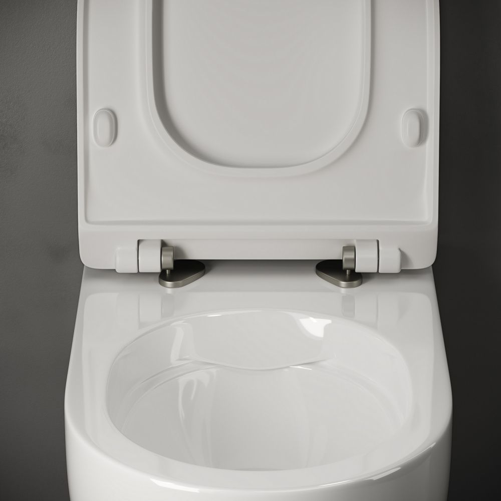 - Подвесной унитаз Simple Rimless, глубокий смыв, для полностью скрытого монтажа, ультра тонким с сидением и крышкой с функцией плавного закрытия, дюропласт