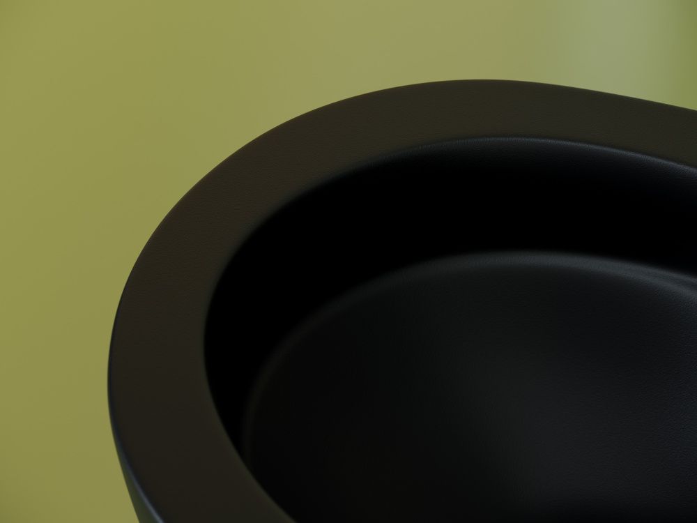 • Особенность конфигурации безободковой чаши: защитный бортик от выплеска воды.