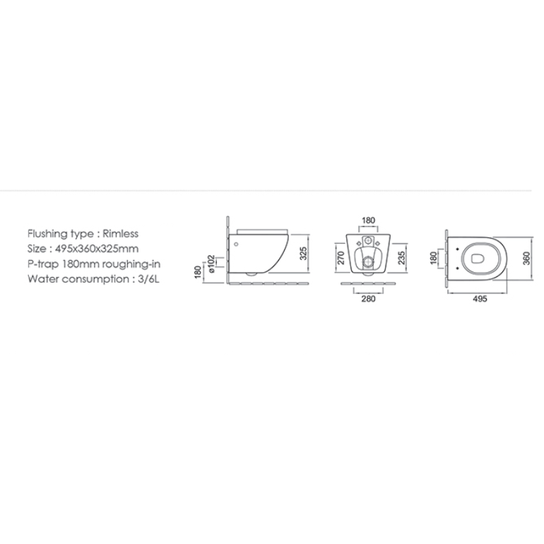 • Безободковый подвесной унитаз из фаянса.