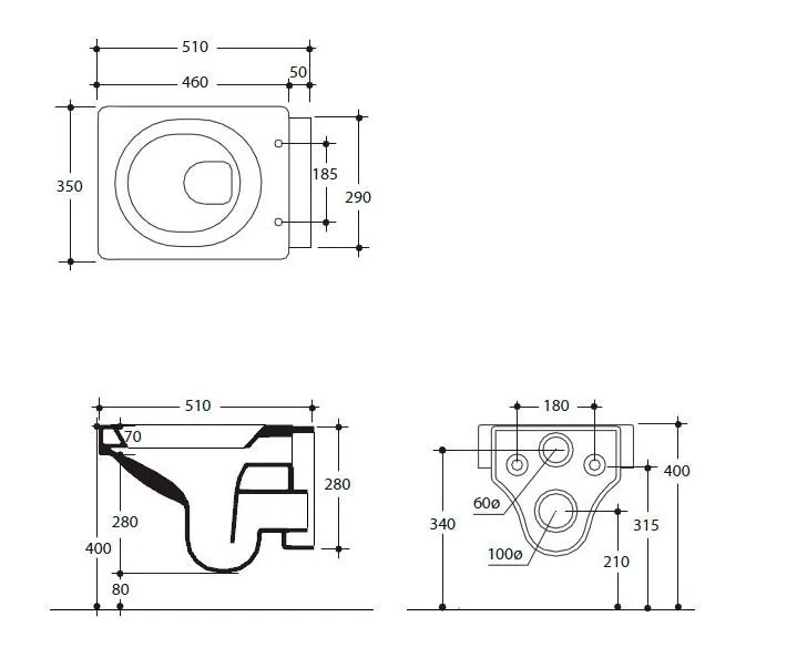- чаша унитаза подвесная с креплением к стене