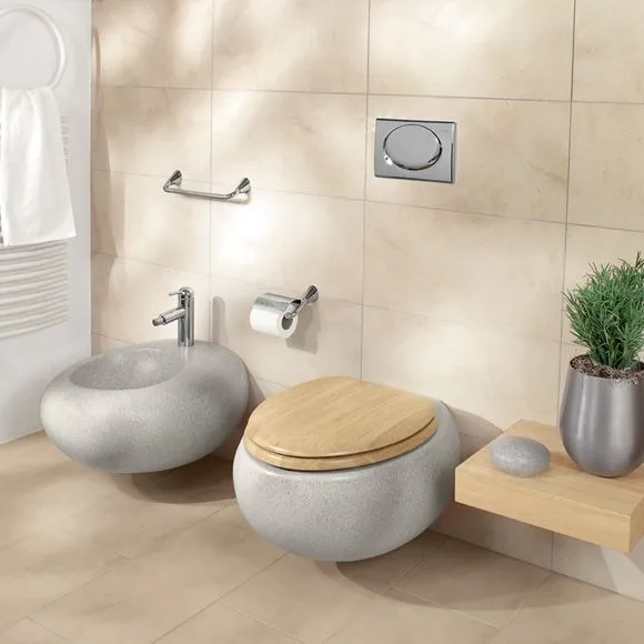 Коллекция Pure Stone символически иллюстрирует мощь потоков воды. Прототипом для формы керамики послужили отполированные течением валуны, которые олицетворяют силу и надежность природы. Природная эстетика глазури цвета камень серый придает керамическим элементам первоначальный вид. Чувственная текстура и выразительный дизайн хотя и создают контраст с теплом мебели из натурального дерева, однако, все сливается в целостную гармоничную картину.