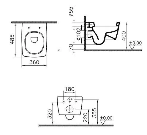 - Унитаз подвесной Vitra Metropole без боковых отверстий.