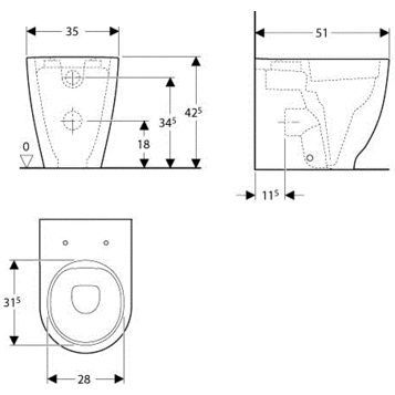 - Длина: 510 мм. Ширина: 350 мм. Вес: 26 кг. Выпуск: горизонтальный в стену. Смыв: вертикальный. Материал: сантехнический фарфор.