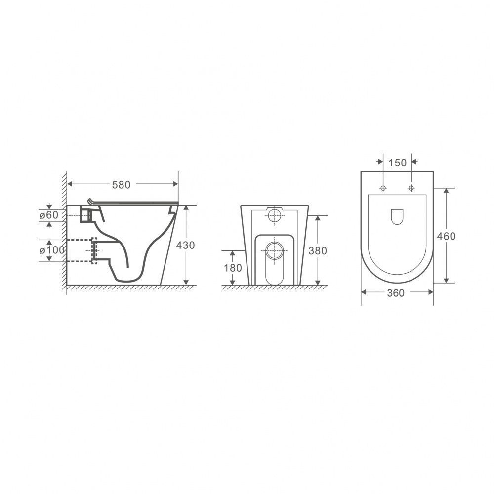 Унитаз приставной Grossman GR-PR4450S безободковый, с тонкой крышкой-сидением