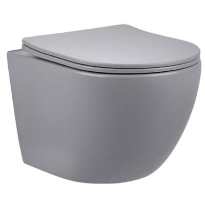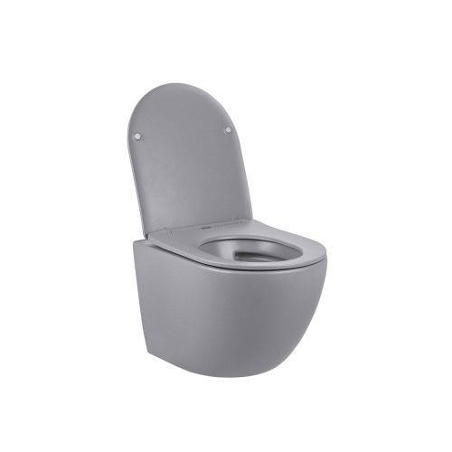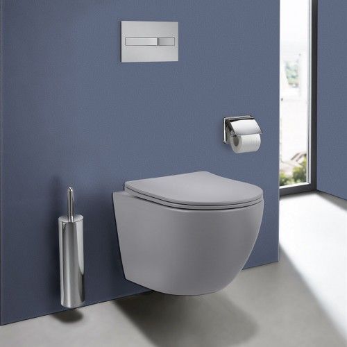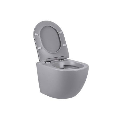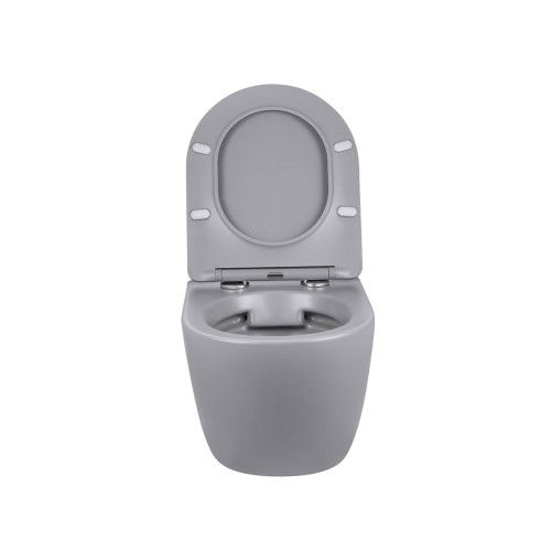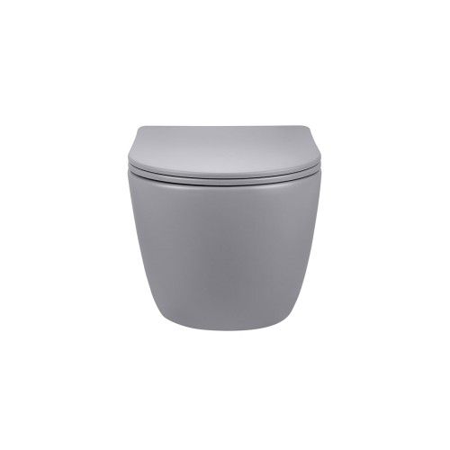 Унитаз комплектуется быстросъемным ультратонким сиденьем Soft Close из дюроплласта и крышкой с системой плавного опускания (серого матового цвета).