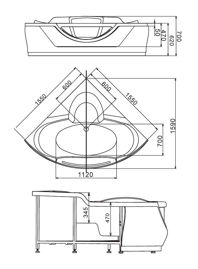 Акриловая ванна Gemy G9025 II B с гидромассажем