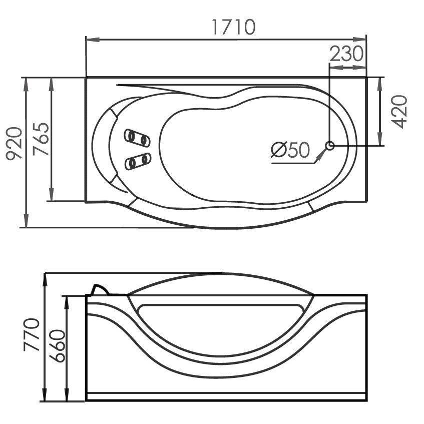 • В комплекте каркас, смеситель с изливом, душевая лейка, слив-перелив, подголовник и съемная панель.