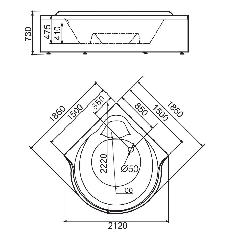 Акриловая ванна Gemy G9088 B с гидромассажем