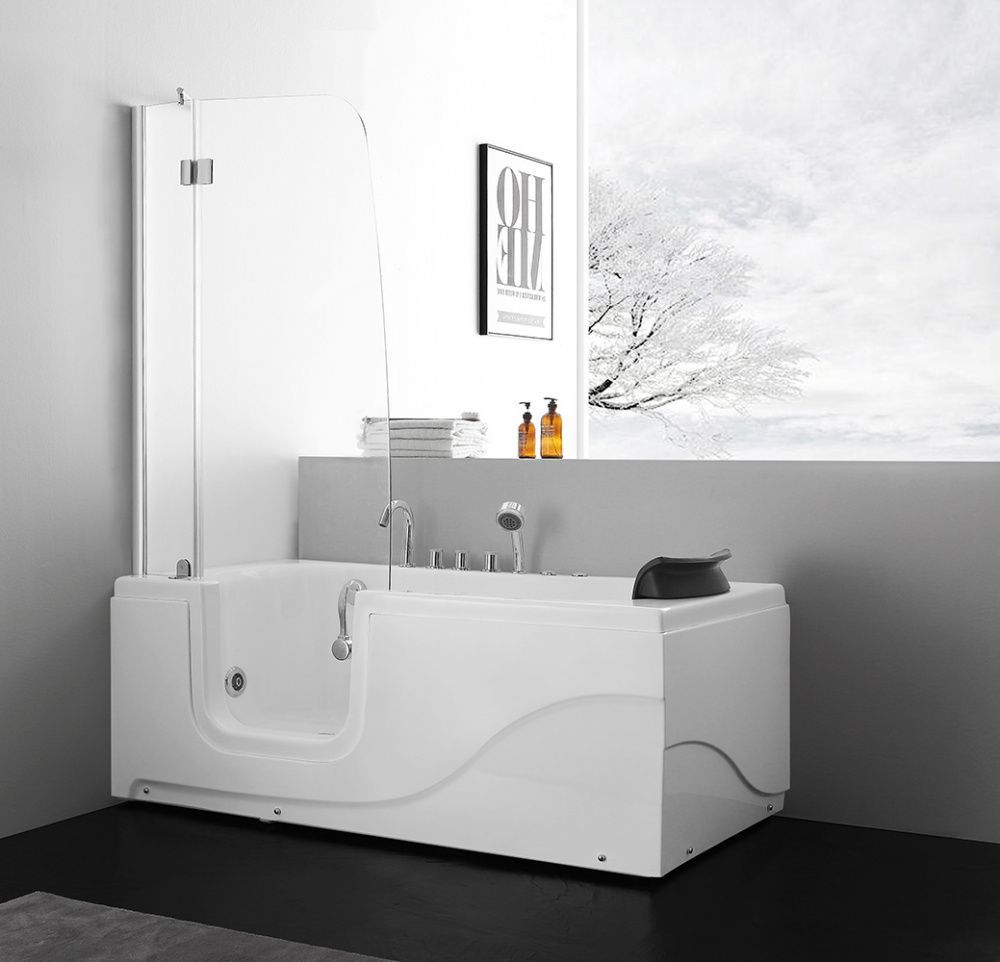 - Также в комплектации стеклянная шторка с распашной дверцей и подголовник.