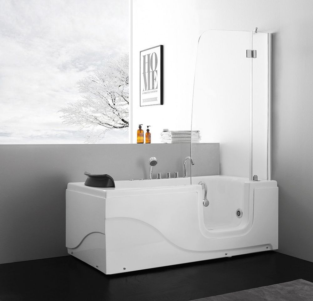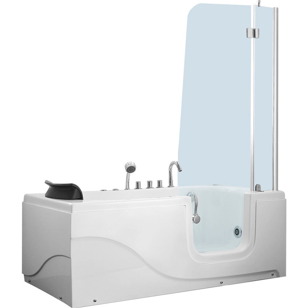 - Также в комплектации стеклянная шторка с распашной дверцей и подголовник.