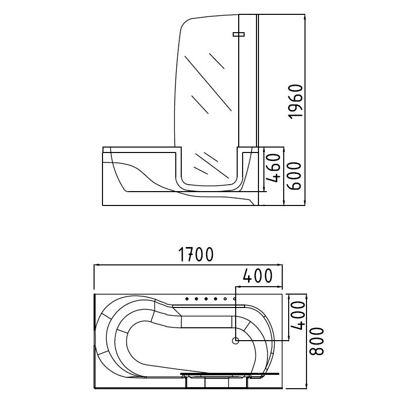 - Размеры: 196х170х80 см. В комплекте каркас, смеситель с изливом, душевая лейка, слив-перелив.